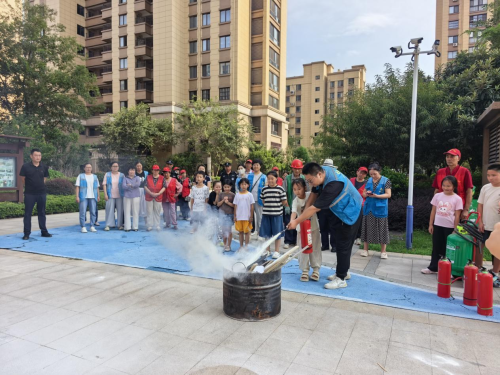 活动现场,社区安全员用通俗的语言讲解家庭火灾隐患(如电器老化、易燃物堆放)、初期火灾扑救方法等知识,还现场演示了灭火器、消防水带的正确使用方式。