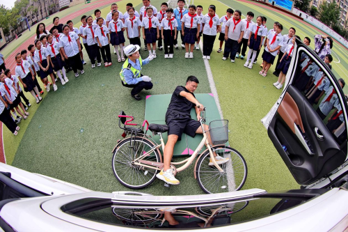 在城区,秦皇岛公安交警将交通安全教育打造成“开学第一课”的特色品牌。走进开发区太和寨中学时,民警不仅为500名师生拆解步行、骑车、乘车的核心规则,更带着大型车盲区模拟教具,让学生亲手触摸标识线,直观感知近3米“死亡内轮差”的风险范围;在海港区迎宾路小学,交警创新设计“交通安全情景剧场”,让学生扮演“行人”“司机”,在互动中掌握过马路、乘车的安全要点。
