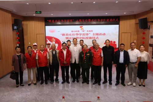 在授旗仪式上,庄仕华将军亲自为“庄仕华中队”及校外志愿服务团授旗,标志着一支新的雷锋精神传承力量正式成立。紧接着,他与翟元斌教授、张慧校长共同为“庄仕华学雷锋书屋”揭牌,该书屋将成为弘扬雷锋精神的新阵地,为师生们提供丰富的精神食粮。