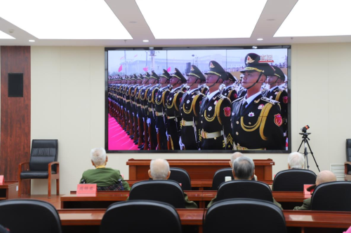 上午8时30分,老干部们早早来到该所多功能厅,为收看此次盛会做足了准备。他们身着戎装、精神抖擞,仿佛在接受党和人民检阅。当《松花江上》《在太行山上》《保卫黄河》《没有共产党就没有新中国》等一首首经典歌曲响起,老干部们更是激动不已,仿佛又回到了那段艰苦卓绝、气壮山河的峥嵘岁月。