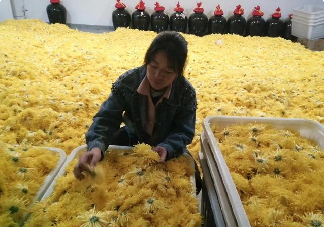 2020年11月份在竹沟镇彩云谷300多亩金丝皇菊在阳光照耀之下灿烂绽放,一丛丛,一簇簇,绵延成一片炫目的金色的黄金海。几十名工人脸上笑盈盈,不仅采摘着金色菊花,还免费观赏一下胜似黄金般的花海。菊花是富贵之花而有代表富贵之,不仅给周卫华周总的企业带来了经济效益,而且给当地居民找出了一条脱贫致富金色之路。