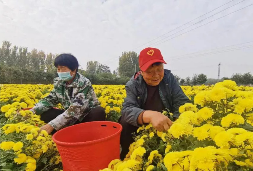 河南讯(李全胜 曹道伟)报道 深秋初冬正是菊花盛开的季节,菊花能观赏,可入药,深受人们的喜爱。最近,新乡县航芝药种植专业合作社的百亩菊花基地也迎来了丰收,美丽的花海不仅是周边群众游玩的“网红打卡地”,还成为当地农民增收的致富花。