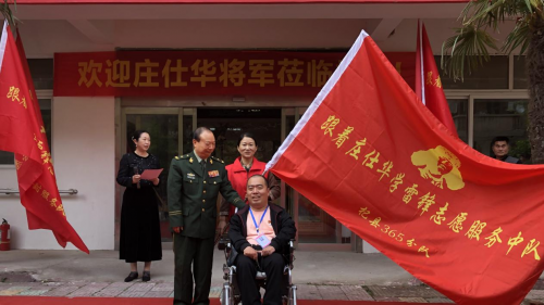 庄仕华将军对身残志坚、一心助人的王六勇及其团队给予高度评价。接过授旗的王六勇激动地表示:“接过这面旗帜,就意味着扛起更重的责任。虽然我行动不便,但雷锋精神的传承不分身体健全与否。我们将以庄仕华将军为榜样,让学雷锋志愿服务在杞县大地蔚然成风。”