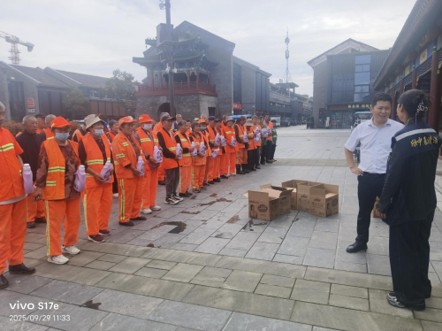 河南讯(李全胜 高松 通讯员 周晓堂)周口报道:在中秋佳节与国庆节即将来临之际,民革周口市委会七支部联合河南豆之道食品有限公司、周口飞吧无人机俱乐部、周口德正口腔医院等爱心单位,于9月30日上午前往周口欣中基环卫服务点关帝庙旅游景区,开展了一场主题为“庆中秋.迎国庆,关爱环卫工人”的慰问活动。此次活动旨在向辛勤工作的“城市美容师”表达节日的问候和崇高的敬意,并送去温暖关怀。
