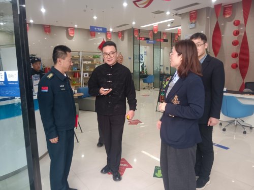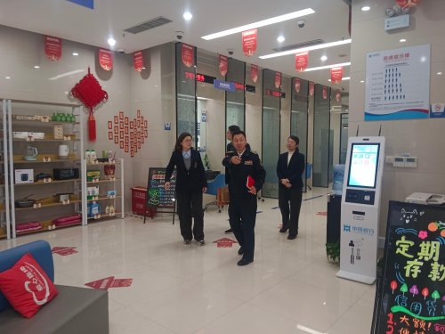在支行讲解员的引领下,宋殿胜一行参观了支行的工作区域、服务、客户服务中心及党建活动室,详细了解了支行将红色文化融入日常运营、以党建引领金融服务的实践举措。