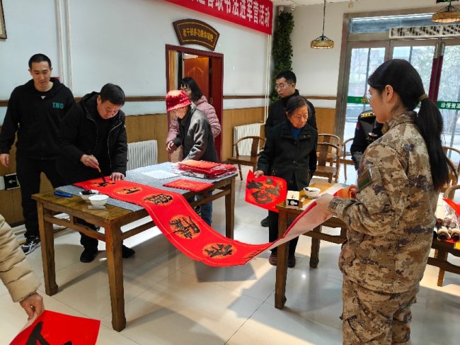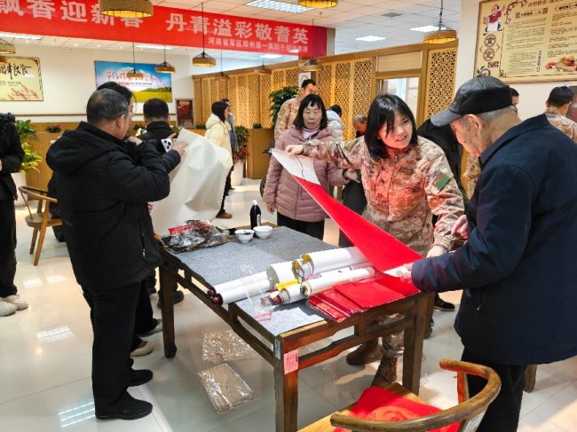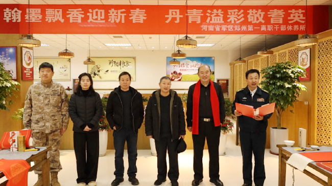 河南讯(李全胜 通讯员 柳国增 张百强)报道:2月6日上午,河南省军区郑州第一离职干部休养所内暖意融融、笑语盈盈,“翰墨飘香迎新春 丹青溢彩敬耆英”新春送春联书法进军营活动在此热闹启幕。离休老干部及家属、该所工作人员与河南省文化和旅游厅原副厅长曲径,中国书画文促会副秘书长、河南省黄淮书画院院长冯少斌,河南省轩辕文化书画院院长梁百庆,中国书法家协会会员、黄河科技学院特聘书法教授耿岐超、中原银行郑州第八大街支行代表等书法家欢聚一堂,在笔墨丹青间感受浓浓的年味儿与关怀。