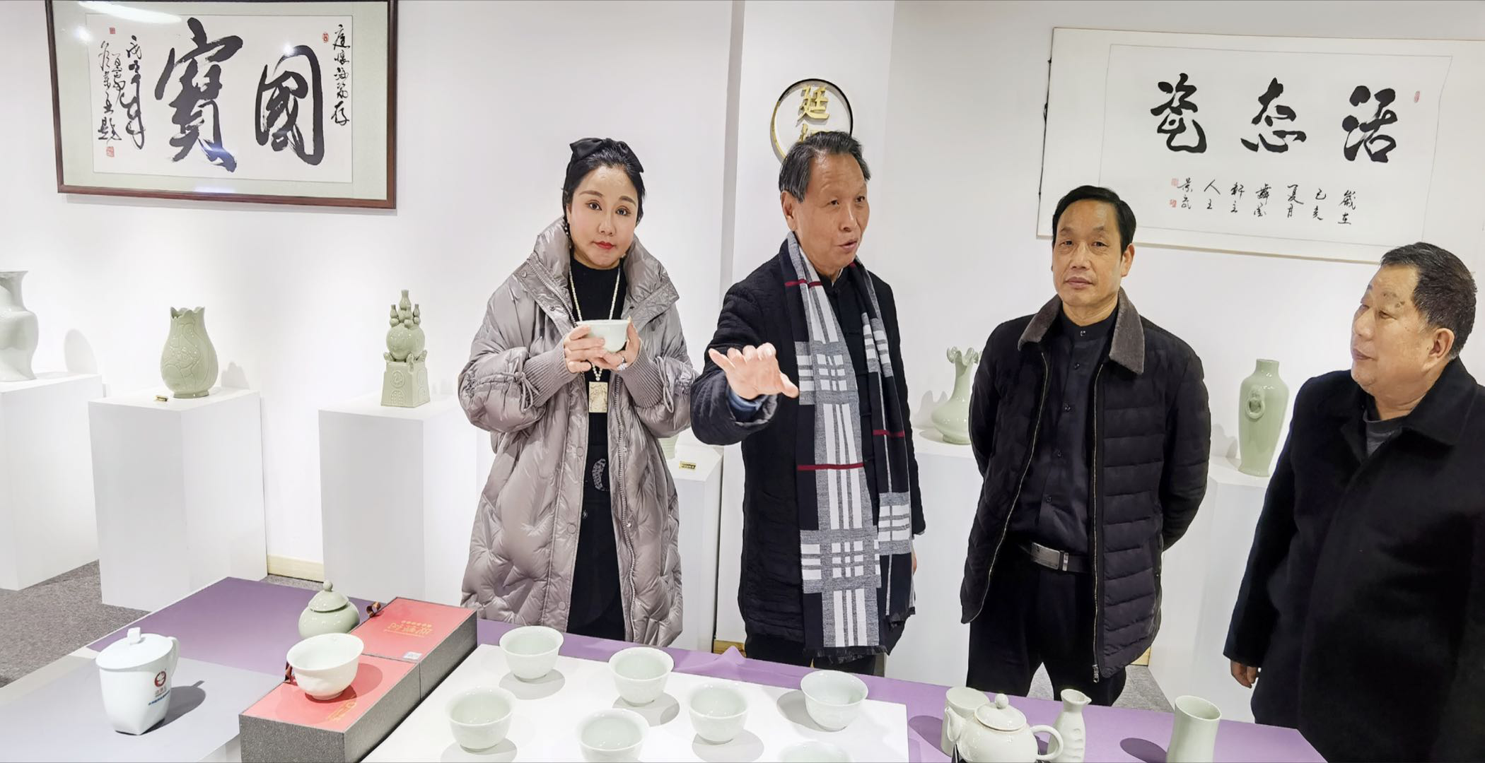 讯(袁宏泰 通讯员田聚成 梁九州)报道 2020年12月5日上午,廷怀汝瓷艺术馆群贤毕至,欢声笑语。中国都市报总裁顾问田聚成、河南省易学文化研究会常务副会长、书法家、易学专家梁九州、书法大师王洪亮、孝德公益大使、国家一级播音主持田晓燕、河南红中实业发展有限公司总经理袁艺及几位省市老领导,慕名参观考察中国汝瓷艺术非物质文化传承人李廷怀大师的廷怀汝瓷展厅精品,共同探索民族精粹的传播与发展。琳琅满目的精品廷怀汝瓷让人赏心悦目,爱不释手。