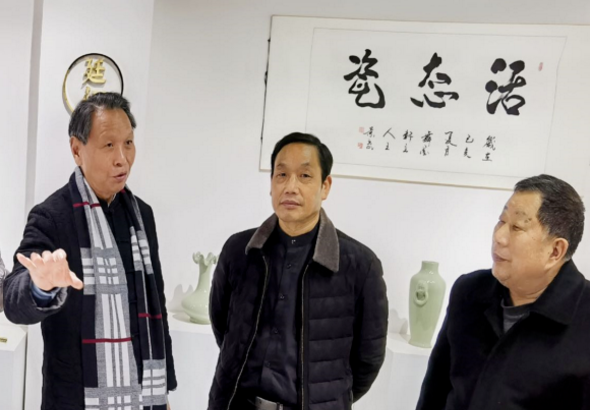 河南讯(田聚成 王长安)报道 2020年12月27日上午,中国都市报总裁顾问田聚成、河南省易学文化研究会常务副会长、河南省星象姓名研究院院长梁九州、青年才俊、书画艺术家袁艺,相约参观廷怀汝瓷艺术馆。参观考察中国汝瓷艺术非物质文化传承人李廷怀大师的廷怀汝瓷展厅精品,共同探索民族精粹的融合传播与发展。