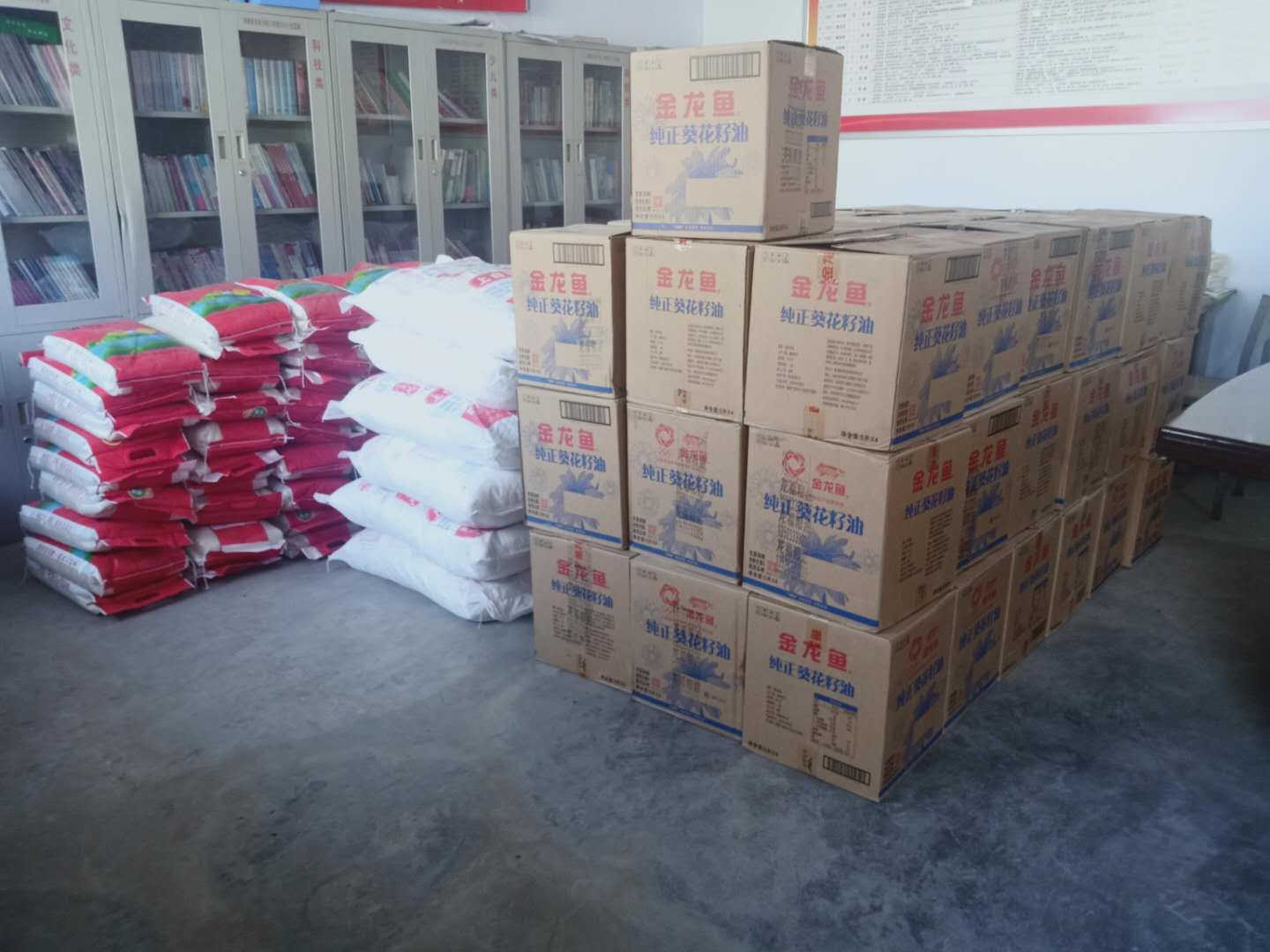 爱心公益协会生活用品开始发放,60岁以上老人领取10斤食用油一桶;70岁以上老人每人领取食用油一桶、清香大米20斤、面粉20斤等生活必需品,中午200多人在村委会大院吃大锅饭。爱心公益协会人员围坐在老人们身边嘘寒问暖,询问老人们的饮食、健康状况,陪老人聊天让他们不孤单,叮嘱他们要合理膳食,平时适当地散步锻炼身体,让他们感受到家人一样的温暖萦绕在心间。