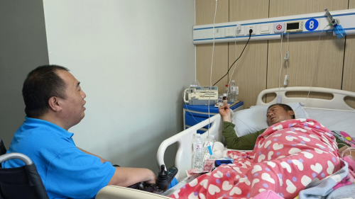 在病房里,王六勇坐在张立的病床旁,与正在输液的他及陪同家属亲切交谈。他仔细询问病情、病因、检查结果和后续治疗方案,言语间满是担忧与关切。交谈中,王六勇不断鼓励张立保持积极乐观的心态,勇敢与病魔抗争。同时,他还送上纯牛奶、鸡蛋等营养品和200元慰问金,并衷心祝愿张立早日康复。