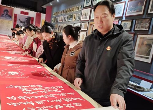 河南讯(李全胜 陈义兵 通讯员 李鹏飞)报道:12月26日,在毛泽东同志诞辰132周年之际,确山县尚城亿达双语学校组织青年教师代表前往确山红色记忆馆,参观中国非遗剪纸长卷展览,重温红色记忆,缅怀伟人功绩。