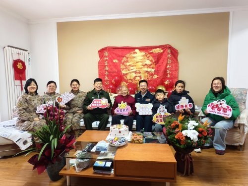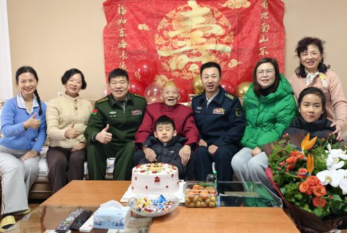河南讯(李全胜 通讯员 柳国增)报道:1月25日,河南省军区郑州第一离职干部休养所领导带领工作人员,联合中原银行郑州第八大街支行的代表,手捧鲜花和蛋糕来到陈邦治家中,与老人的家人齐聚一堂,共同为这位百岁老寿星庆祝生日。